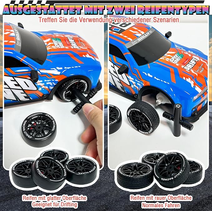 2 set di pneumatici intercambiabili: da corsa e da drift.
