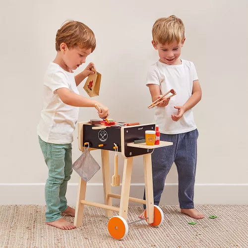 Con questo realistico barbecue in legno, i bambini dai 3 anni in su possono sentirsi dei veri piccoli chef, preparando gustose grigliate e inventando pranzetti per amici e famiglia.